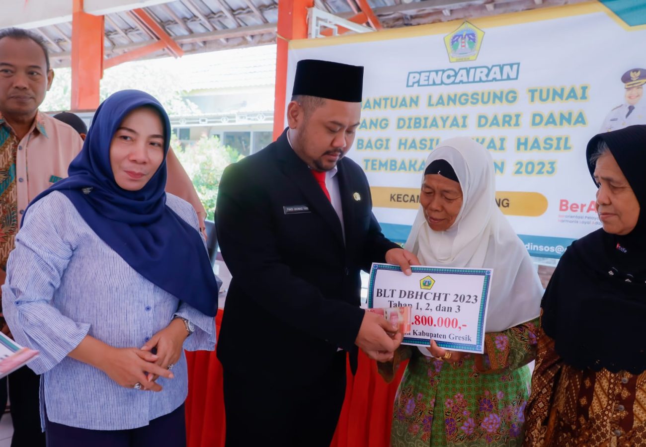 Merdekapostnews.com – Gresik,Jatim – Pemerintah Kabupaten Gresik, terus berupaya dalam meningkatkan kualitas kesejahteraan masyarakatnya. Salah satunya melalui penyaluran Bantuan Langsung Tunai (BLT) dari Dana Bagi Hasil Cukai Hasil Tembakau (DBHCHT).