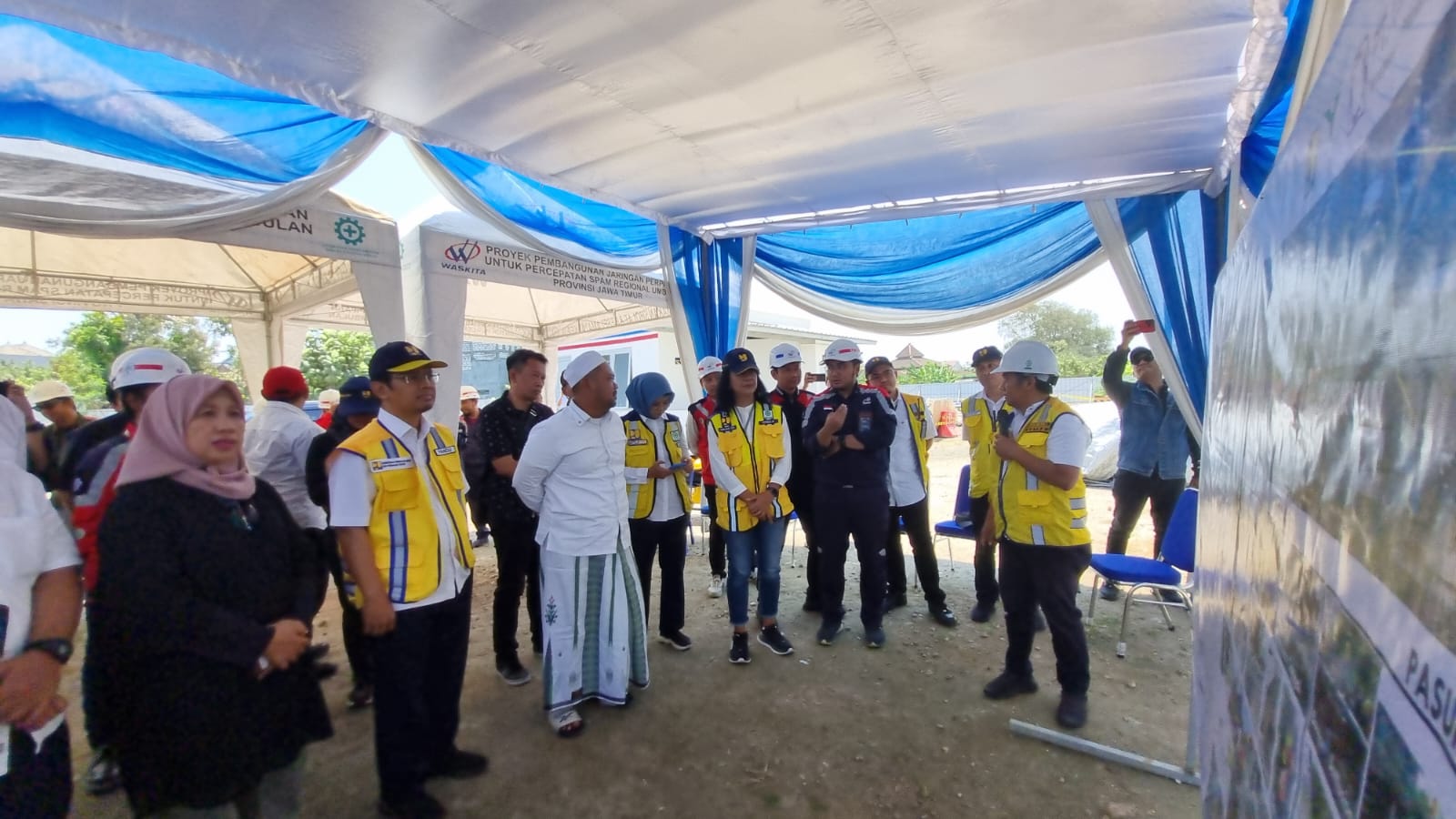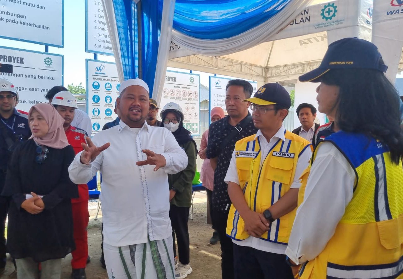 Merdekapostnews.com – Gresik,Jatim – Dirjen Cipta Karya Kementerian Pekerjaan Umum dan Perumahan Rakyat (PUPR) RI Diana Kusumastuti meninjau langsung Pekerjaan Pembangunan Jaringan Perpipaan untuk Percepatan SPAM Regional Umbulan Provinsi Jawa Timur di Manyar. Ditargetkan pada bulan Desember air dari sumber mata air Umbulan, Pasuruan sudah bisa mengalir ke rumah warga.