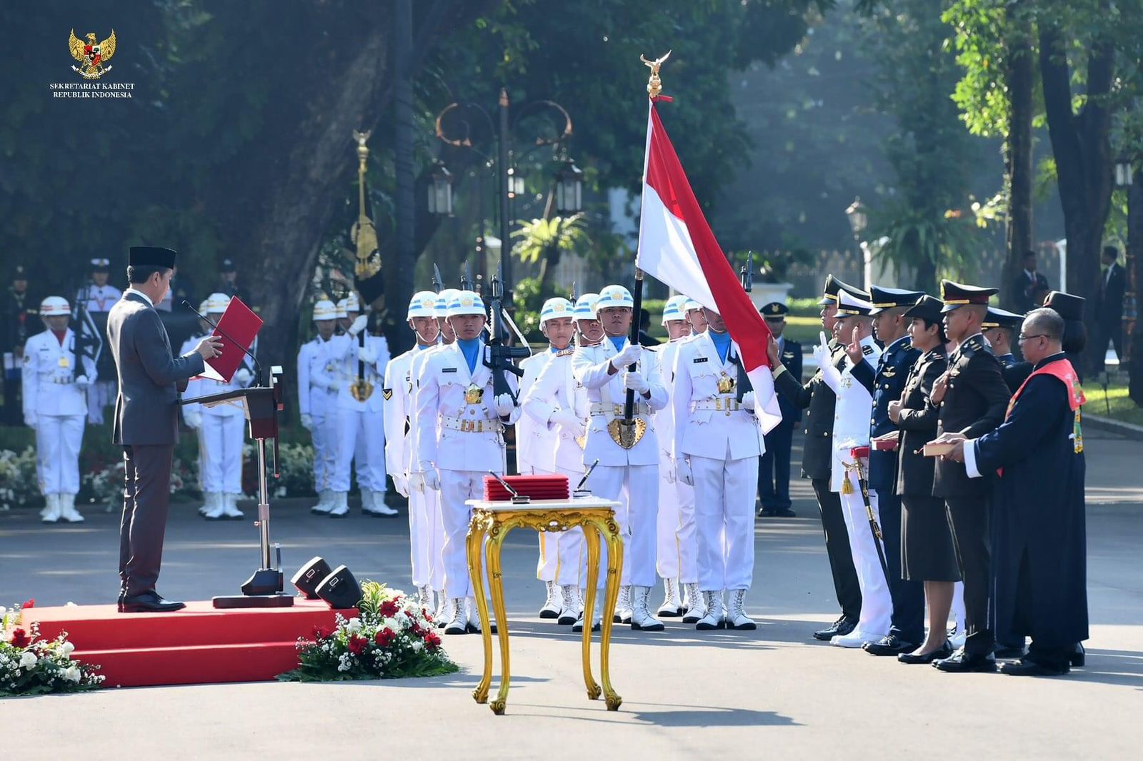 Di akhir sambutannya, Presiden berpesan untuk rela berkorban dan selalu mengabdi kepada negara, menjaga solidaritas TNI-Polri, dan menjunjung tinggi sumpah prajurit yang telah dilakukan.
