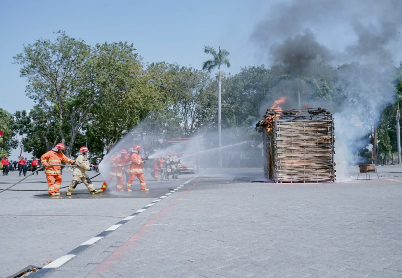 Dalam momen ini, dipertontonkan juga aksi tim Damkar Gresik mulai dari teknik pemadaman api, penyelamatan hewan liar, hingga penggunaan alat pemadam kebakaran yang dipandu oleh instruktur berpengalaman.