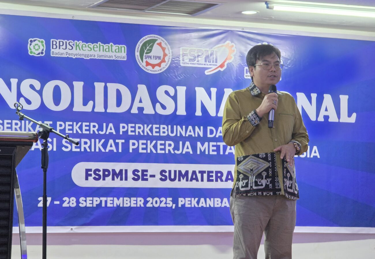 Merdekapostnews.com – Pekanbaru,Riau – Anggota Dewan Pengawas BPJS Kesehatan, Siruaya Utamawan, menegaskan pentingnya pemahaman dan advokasi hak jaminan kesehatan bagi para pekerja di sektor perkebunan dan kehutanan. Hal ini disampaikannya dalam sesi diskusi bertema “Manfaat BPJS Kesehatan bagi Pekerja Perkebunan dan Kehutanan” pada acara Konsolidasi Nasional Serikat Pekerja Perkebunan dan Kehutanan (SPPK) Federasi Serikat Pekerja Metal Indonesia (FSPMI) di Pekanbaru, Riau, Sabtu (27/09/2025).