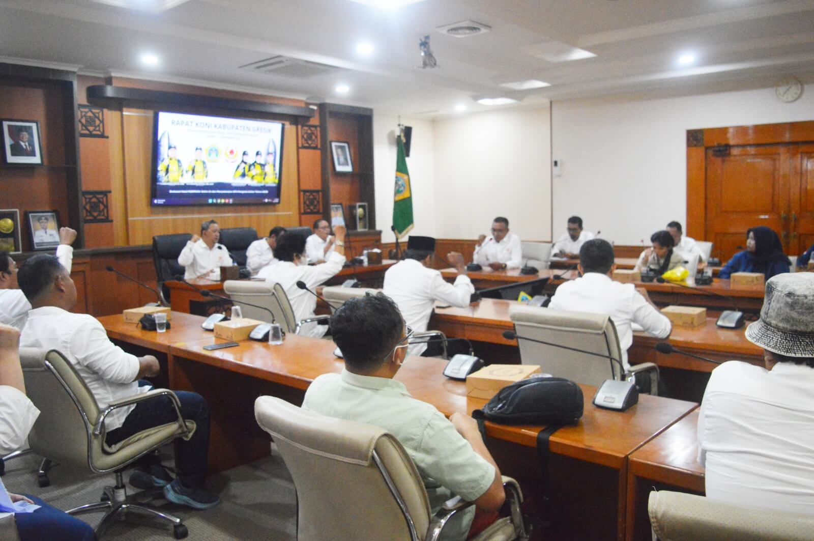 Merdekapostnews.com – Gresik,Jatim – Komite Olahraga Nasional Indonesia (KONI) Kabupaten Gresik menggelar Rapat Evaluasi Hasil Porprov Jawa Timur IX Tahun 2025 pada Kamis (11/12/2025) di Ruang Graita Eka Praja Kantor Bupati Gresik. Rapat dihadiri pengurus KONI serta seluruh perwakilan cabang olahraga (cabor).